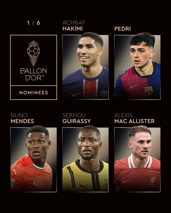 24 Live Network 8月7日新闻金球奖正式宣布了2025年男子金球奖的30人入围名单。登贝勒(Dembele)带领巴黎的9名球员入围,雅马尔(Yamal),拉菲尼亚(Rafinia)和姆巴佩(Mbappe)被列出。